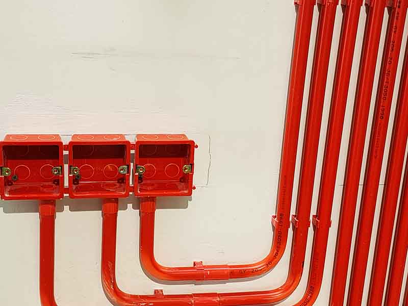 五:管道内要无接头、无扭结。电线线路有弯曲或是分支的需要的,要使用专业的弯头和护套盒等进行连接, 电线不够长的话,也要在护套盒内进行连接,要确保穿线管内的电线不能有接头或是扭结。
