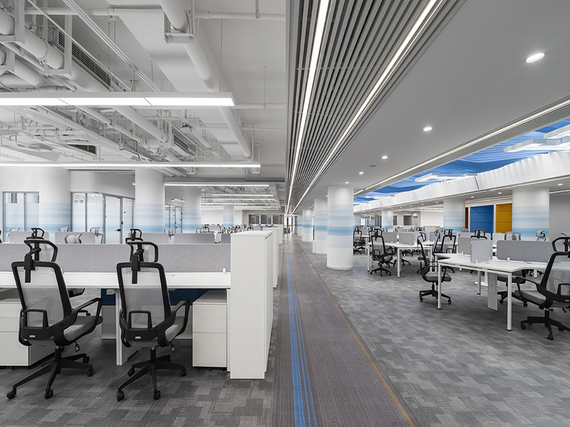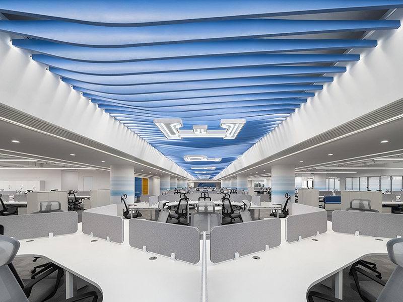 办公室设计装饰 从室内装修特性上看来,大型敞开办公区 办公室装修设计与空间层次感的表现,似乎具有不可分割的关系,无论是在设计空间还是装修装饰过程上,“层次感”总是随之而来。