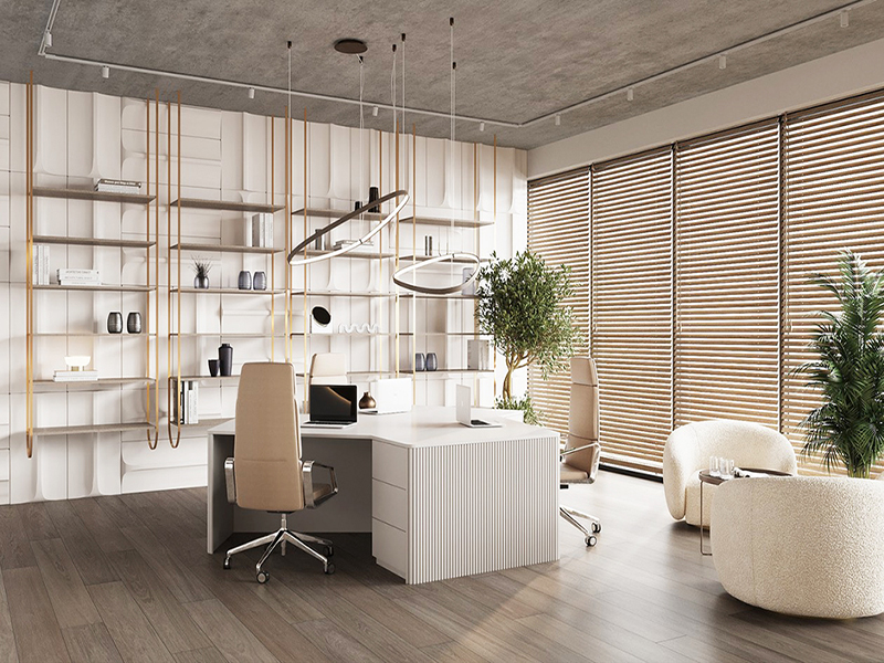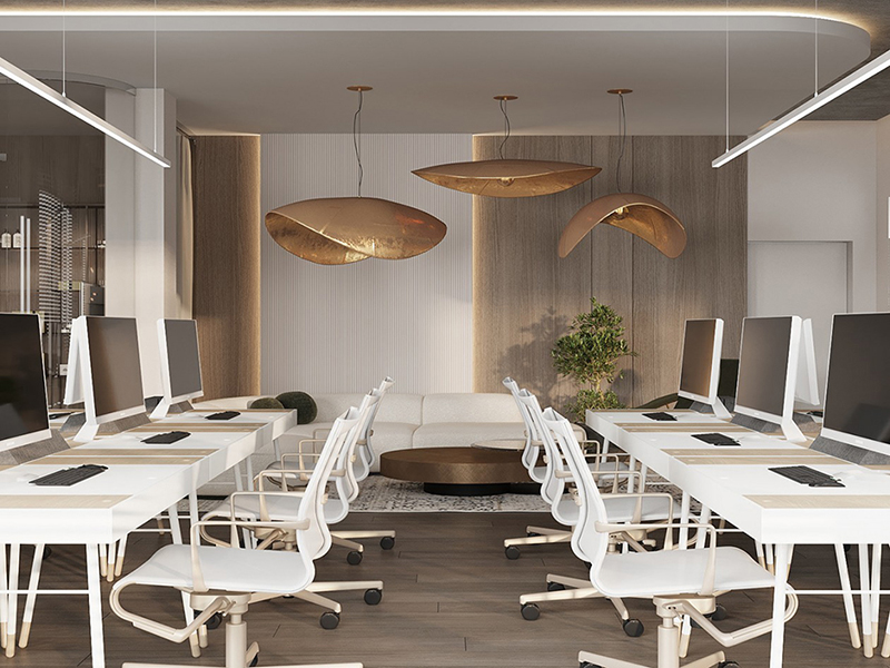 如果平面视图仅反映平面的设计意图,则效果图将从三维层次上较大限度地实现最终的呈现效果。这样,我们就可以直观地体验到终的效果呈现,确定办公风格,选择办公家具的风格和颜色,甚至根据效果图大致了解。