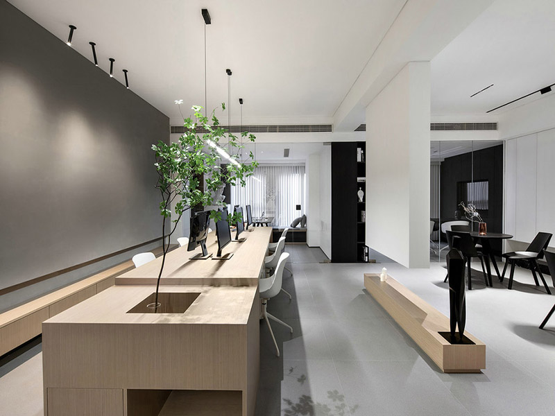 方块地毯是办公室装修中最常用的地面材料。平价、耐用、易铺贴,也能与多种装修风格相搭配,是办公室地面最常用的材料。