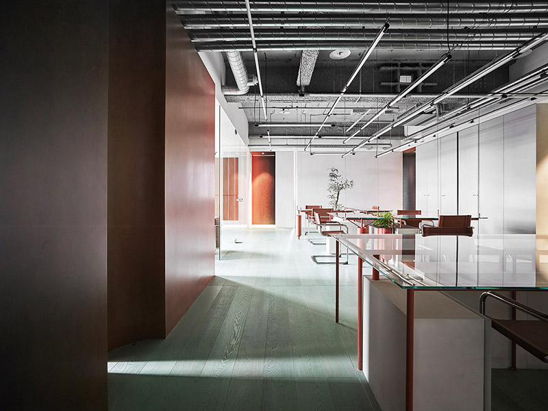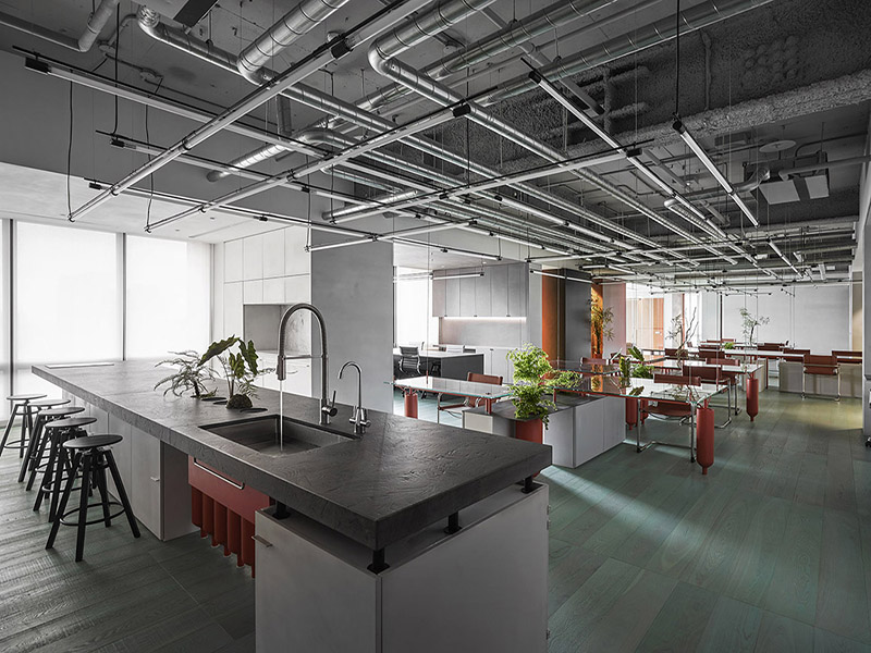 地面颜色与空间大小搭配:办公空间较小的办公室地面颜色不宜使用颜色过深的,绿地颜色会让办公空间更加紧凑压抑。空间较大的办公室可选择明快的颜色则可以彰显办公室的轻快活跃。