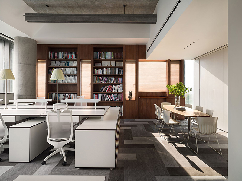 所以,对于背光的办公室来说,应尽可能选用明亮的颜色,弥补空间本身的不足;而在层高较低的办公室,可以使用淡雅的浅色来中和建筑本身的不舒适感,在提升办公室档次之余,还能够起到扩大空间的视觉效果,比如使用浅蓝、浅绿做墙面。