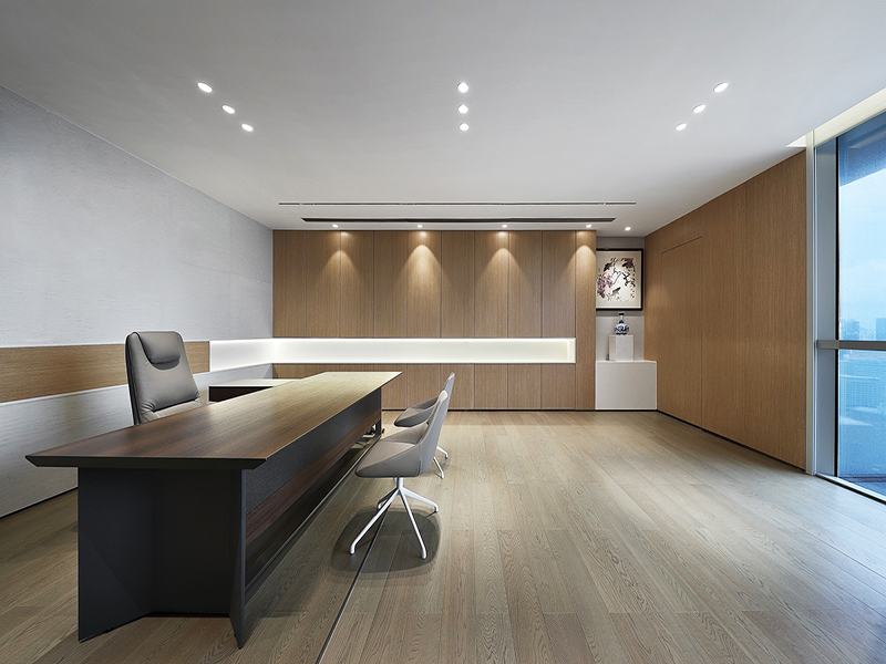 总经理室或董事长室,可以说是一个企业的VIP室。接待的多为重要人物。除了前台背景,董事长或总经理办公室也算是一个比较重要的形象区域了,装修时要注意材质运用,不能太奢华,但一定要有档次和品位,当然更多的应该传递企业使命、核心价值及总经理或董事长的人格魅力。