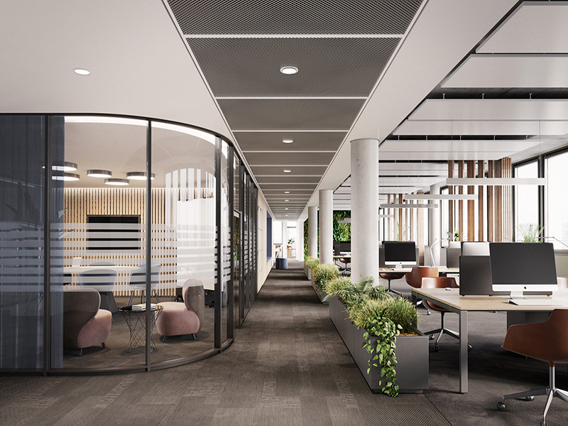 办公室装修设计的方案制作第二步,就是与设计师洽谈详细的装修设计方案。这一份办公室设计方案就是针对办公空间具体施工和装修的。办公室装修主要包括办公用房的规划、装修、室内色彩及灯光音响的设计、办公用品及装饰品的配备和摆设等内容,所以在装修方案上就需要充分考虑到各个细节。