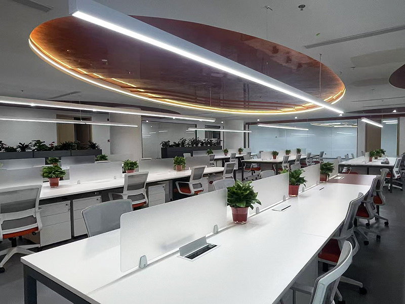03,办公区域的设计:设计师在设计的时候,将其安置在靠近窗户的区域,在设计师看来员工更喜欢的是自然与阳光,故此设计师将采光以自然的设计手法引入室内,让员工时时刻刻沐浴在温暖的阳光中,让员工可以时时刻刻与自然为伴,这样对于员工个人的成长有积极的推动作用。