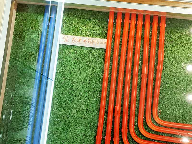 二:强、弱电线要分开。强、弱电的管道是不能设置同一个凹槽里的,更不能同穿一根管道。为什么?因为强电在通电时,产生的电磁波会强烈影响到弱电信号哦。强电线管道与弱电线管道相交的话,弱电的穿线管需要用铝箔纸包裹住其中的相交部分。