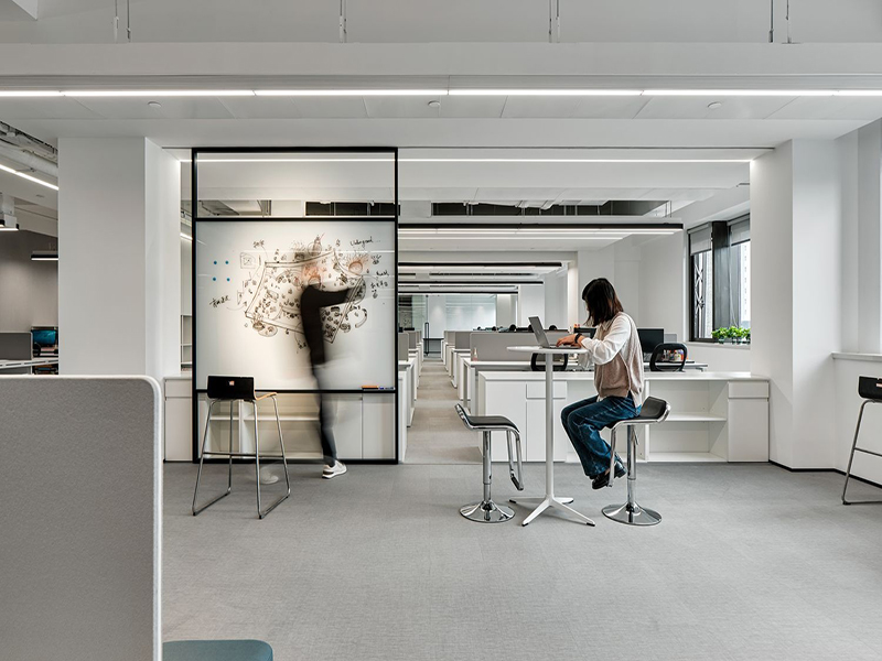 目前常见的三种办公室布局形式是开放式、封闭式和半开半封式。设计师要根据可以使用的总面积、需要划分的功能区域、使用部门、使用人数等细化信息,在符合公司性质的前提下来进行办公室平面布局设计,以满足办公需求。