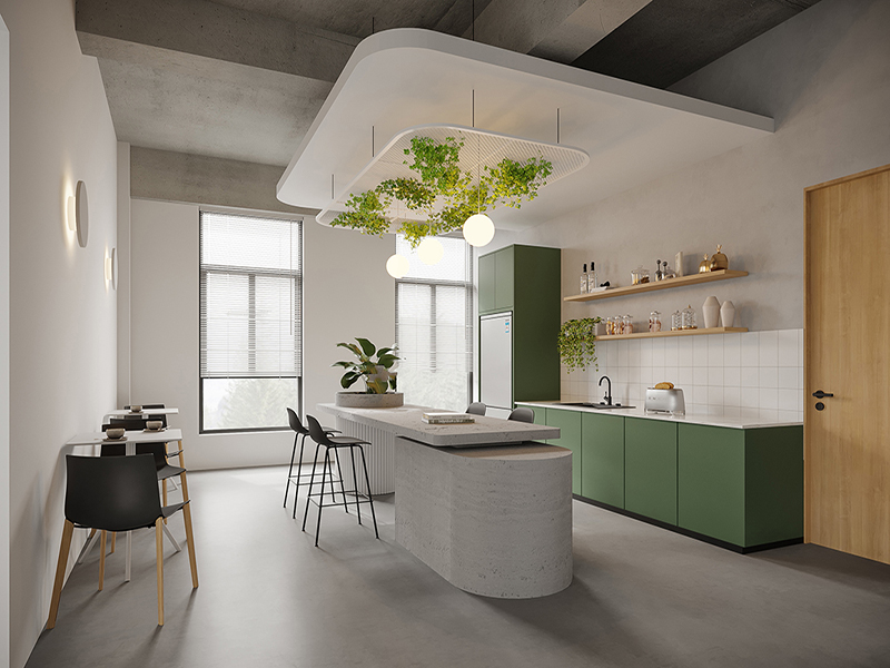 首先,现代创意办公室设计装修方便地切换办公室内的所有灯,调节空调开关的亮度,调整窗帘的升降角度,并通过办公场所的触摸屏或智能按键面板控制场景切换。