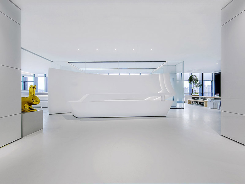 在设计上追求创新的同时要尽量简洁,巧妙地将各种线条(直线和曲线)结合起来,让整个空间显得张弛有度,层次分明,去除多余浮躁的元素,力求营造最大的办公空间舒适度。