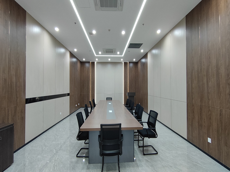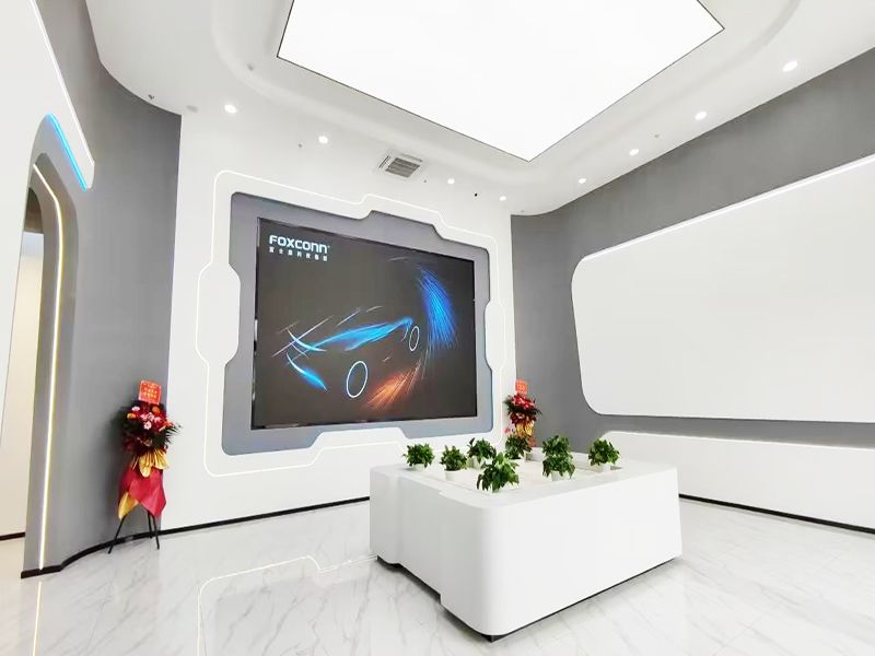 在富士康集团的会议室及办公室区域装修中,公装无忧以现代化、艺术化风格为切入点:以铝制及钢化玻璃打造的会议厅,光线充足,简约大气。公装特别挑选、定制了与主题印象色相同的人体工学椅与会议长桌,配合天花板的全覆式LED灯板,通过整个装潢组合诠释富士康集团的品牌风格。
