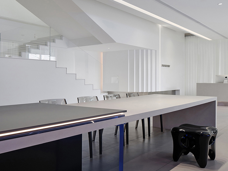 不同的企业对于办公室装修的需求完全不一样,即使是走简约风也不能简单地将单一色调使用在装修场景里,这是不合理的,也很难形成自我特色。作为一家食品公司的公装需求,公装无忧为集团的设计以白色为主色调,富士康集团logo的颜色作为点缀,使得办公室的整体装修色调不会过于简单冷淡,这样的色彩搭配也符合企业的文化形象,能够富士康集团的品牌风格。