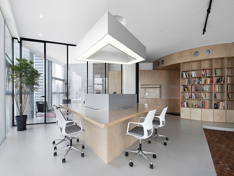 开放式办公区,空间视觉更加开朗,这种设计非常时尚,更适合年轻人。它不仅能活跃气氛,还能促进员工的内部沟通,增加员工的流动性和舒适度。此外,在设计中可以适当简约,运用一些几何线条或装饰元素,使办公环境透明,也无形中提高了工作效率。