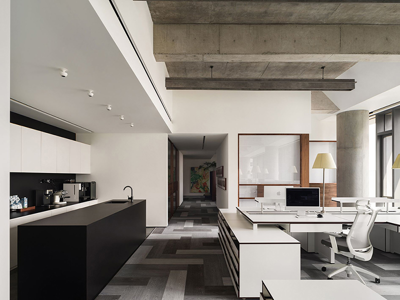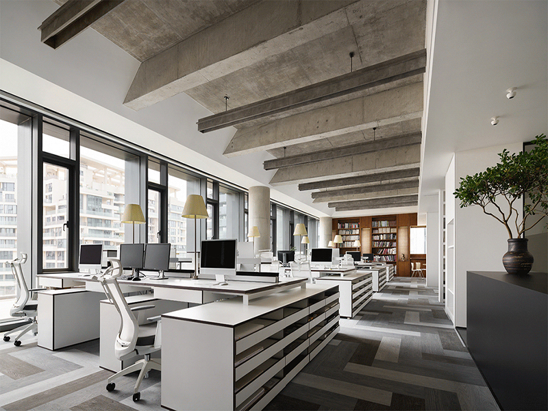 一般而言,办公室设计不宜使用过多的颜色,否则容易造成“视觉污染”,最好使用同一色系来进行搭配,墙面、天花板、平面布置与隔断设置等,保持色彩统一的同时,做到颜色深浅的变化,使得视觉不会太单一。