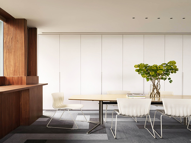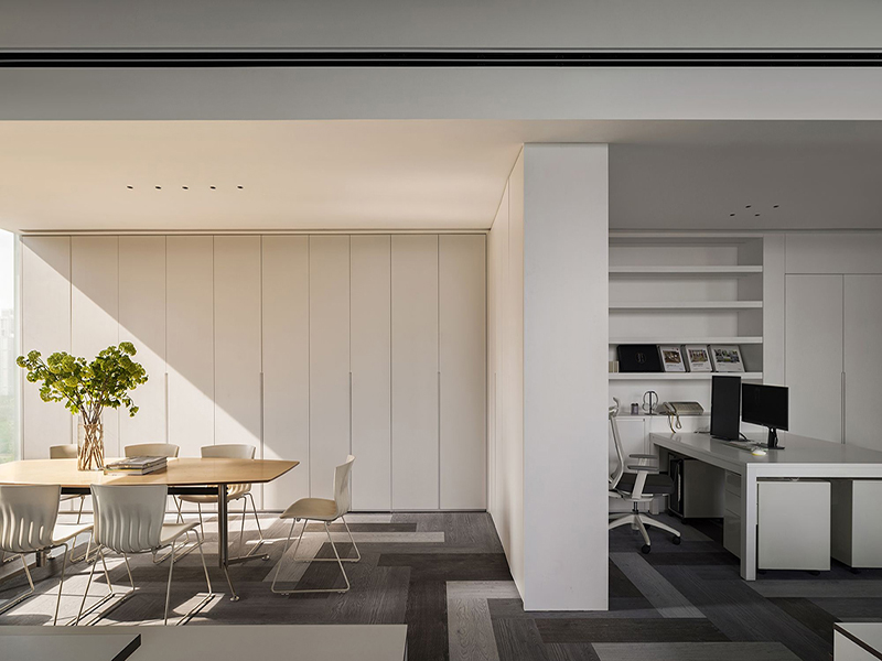 格子式布局通常适用于大型企业,需要有明确的团队和任务分工,或是需要高度保密的办公室空间,设计思路是将每个办公室划分为一个个格子,每个格子有门,且紧密链接,封闭私密。格子式布局设计的优点是可以在不影响高度私密性的情况下,最大限度地利用空间,并且有利于保障员工的安全。