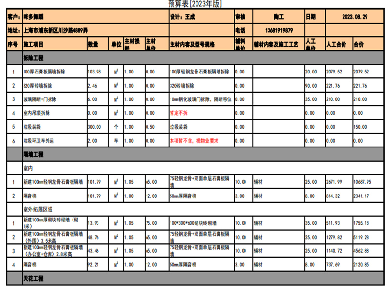 上海鼎劢建筑装饰工程有限公司是一家集设计施工为一体的专业室内设计预算表,公司致力于工装为主装修、工业厂房装修装潢,上海机电设备安装等工程设计施工服务,业务范围涉及国内多地,为众多企业提供优质专业的工程服务。