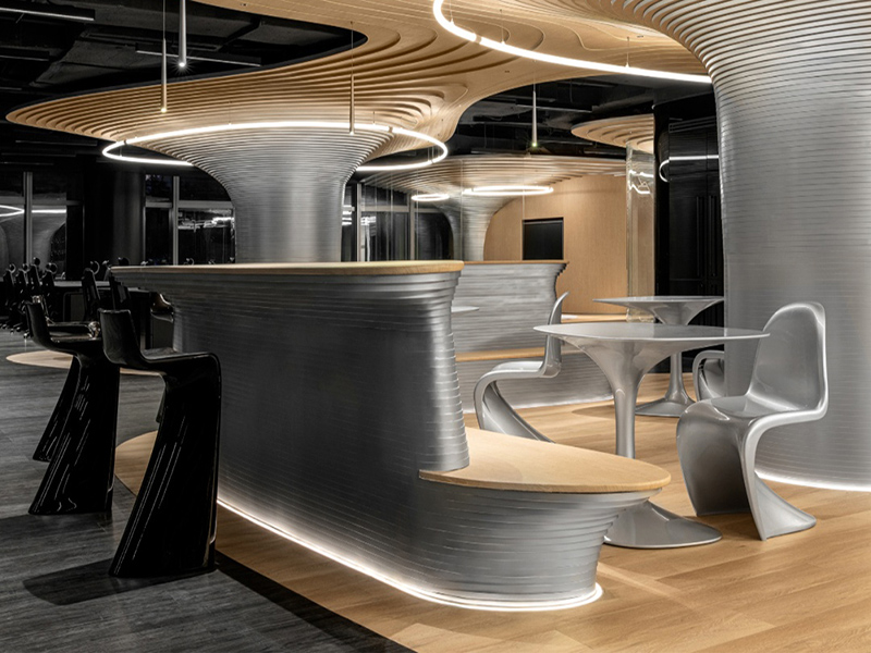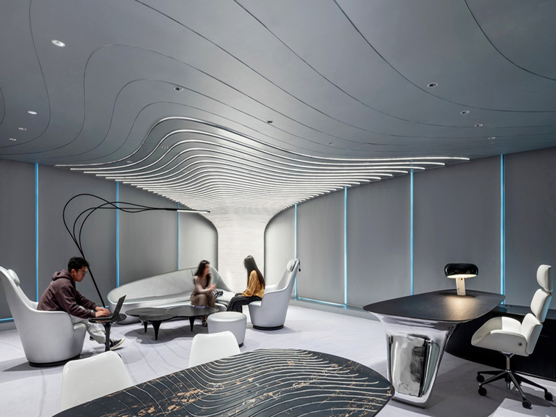 办公室顶部装修可以实现美化空间和防尘的两种效果。目前办公室顶部装修材料有石膏板天花、矿棉板天花、铝(或钢)网格天花、顶面喷涂。