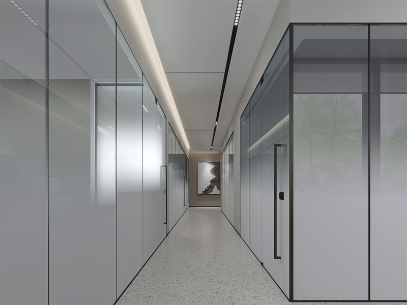 考虑到办公室走廊空间,我们在对它设计时,不能一味地在有限的空间里增加装饰品,这样反而会显得有种拥挤感,为了营造开阔的视觉效果,建议选择玻璃材质、或者纯白颜色墙纸来装饰墙面。