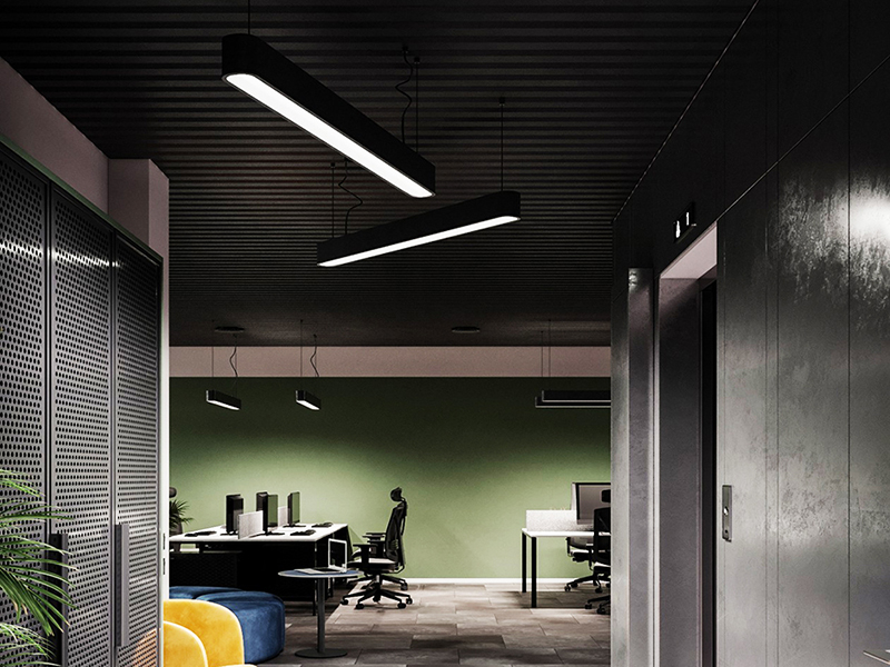 线性布局适合长条型的办公室空间,设计思路是将办公室沿着主走廊向两侧布置,形成一条长条形的空间。线性布局设计的优点是能够最大限度地利用空间,避免空间浪费,并且方便通行,通常适用于长条形和狭窄的办公空间或是需要大量工作人员协同合作的场合。