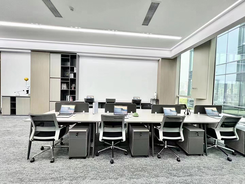 开放式布局适合较大的办公室空间,设计思路是将办公室划分为一个个工作岛,每个工作岛之间没有隔离,形成一个共享的开放式办公环境,这是一种流行的现代设计布局方案。开放式布局设计的优点是能够促进团队协作和沟通,能够让员工更好的了解公司的整体运作情况,并且更容易发现问题,及时解决,促进员工之间的沟通和互动。