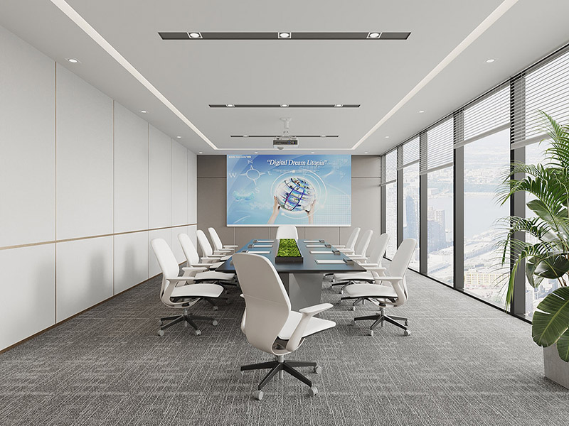 在会议室中设置多个灯光回路,根据需要在智能按钮面板中设置不同的场景,例如:入口场景,投影场景,游戏场景,会议场景,休息场景,清洁场景,远程会议等,只要您触摸面板,就可以在员工需要时轻松切换场景。