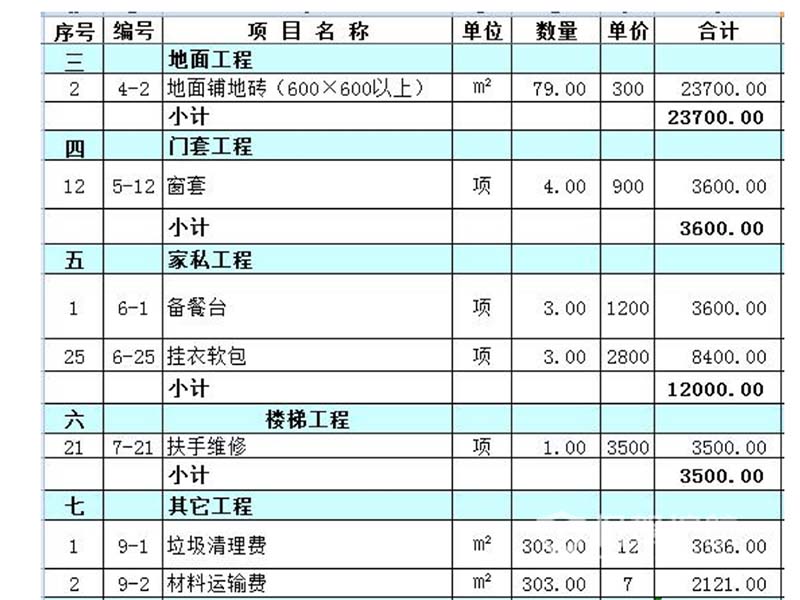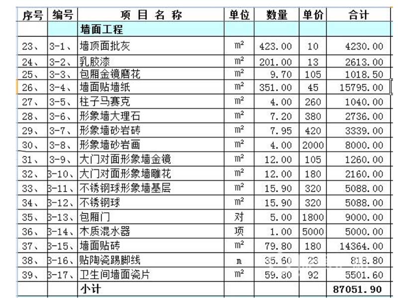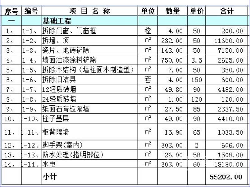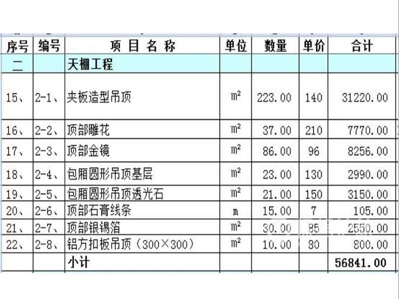 二、酒店装修预算清单(仅供参考)