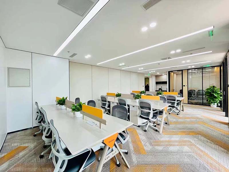 开放式布局适合较大的办公室空间,设计思路是将办公室划分为一个个工作岛,每个工作岛之间没有隔离,形成一个共享的开放式办公环境,这是一种流行的现代设计布局方案。开放式布局设计的优点是能够促进团队协作和沟通,能够让员工更好的了解公司的整体运作情况,并且更容易发现问题,及时解决,促进员工之间的沟通和互动。