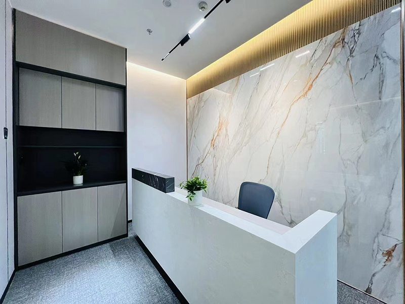 对于前台区的办公室装修设计来说,主要是要突出企业的文化与实力,对于装修材料的选择要尽量追求高大上的感觉,让员工或者客户都能感受到企业的精神面貌。