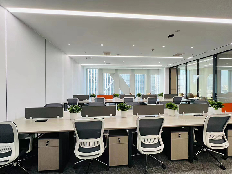 现在的办公区域设计都趋向于简约时尚风格,在家具方面最好选择屏风办公桌,而办公区可采用开放式办公形式,给员工足够的自由,而又不会影响工作效率。