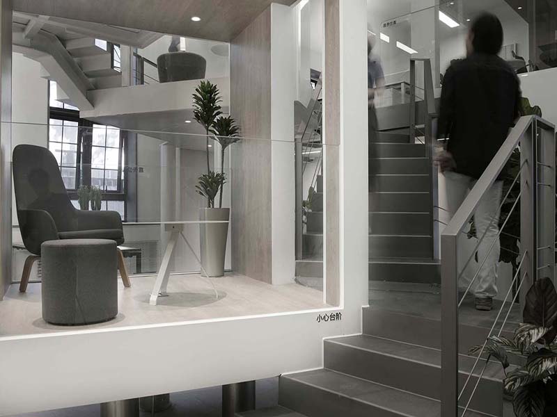 01,商业空间中难得地使用了深色系列的色彩,设计师应用简约的线条比例和材质布局,呈现独特的工作环境,这里的人重视空间与人之间的交流,并且呈现最体贴的样貌,大家都希望工作不仅是工作,是持续且延续我们喜欢的事情,尽情地用力地去做,用热忱做坚持的事,表现对空间的理想、极简特色。