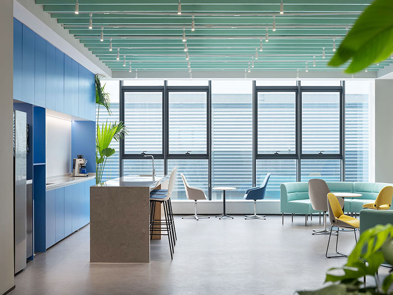 墙面的修饰在办公室装修预算中占比较大,不同职务的员工、不同面积以及位置的办公室在颜色搭配上都要有明确的选择,例如:小面积选择浅色,背阴位置适合暖色,领导办公室更适合深色。